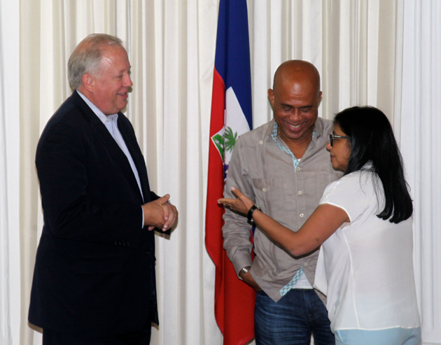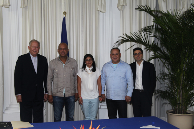 Con la mediación del Presidente de la República de Haití Michell Martelly, la delegación del alto nivel enviada por el Presidente Nicolás Maduro sostuvo este sábado un encuentro con el Consejero del Departamento de Estado Norteamericano Thomas Shannon, Pamela White, embajadora de EE UU en Haiti y Thomas Adams, coordinador del Departamento de Estado para esta nación.