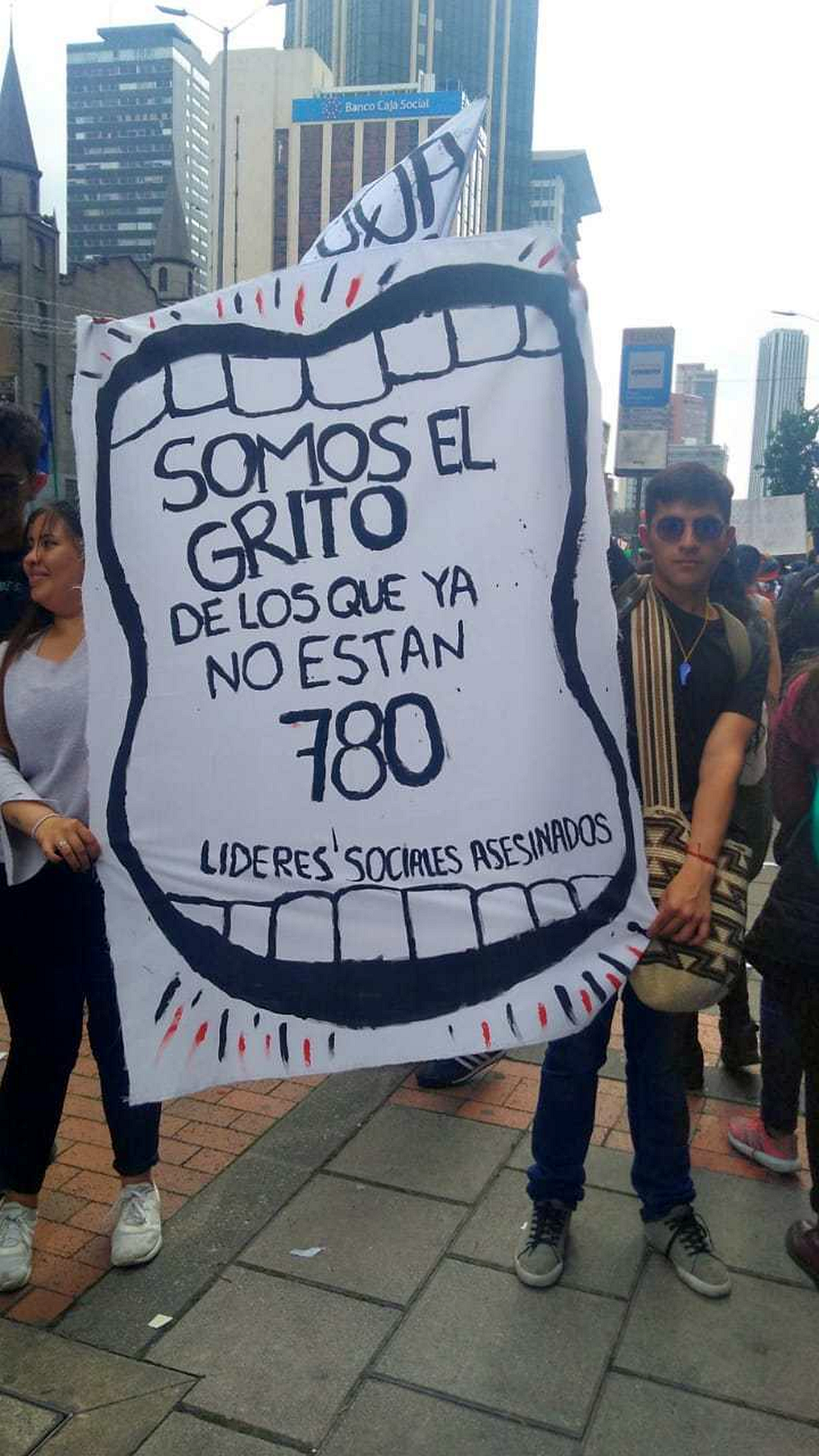 nciaron la desprotección gubernamental frente a las crecientes amenazas de sectores paramilitares y los sistemáticos asesinatos a líderes sociales en la Colombia rural, además del reciente asesinato de 18 menores de edad en un bombardeo del Ejército.