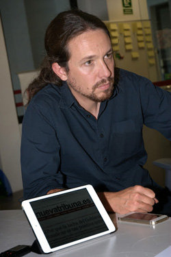 esp pablo iglesias3-Nosotros debemos respetar la discusión asamblearia que tenemos en el mes de octubre. En ese sentido, creo que es muy importante que yo no utilice la enorme presencia que tengo en los medios de comunicación para condicionar los debates. He dicho lo que pienso muchas veces y me he mostrado partidario del derecho a decidir. Pero creo que es importante que Podemos en este momento tenga el debate en esta cuestión y que la decisión final la adopte la asamblea, así que yo no querría condicionar esa posición.