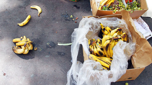 Y, ¿cómo y dónde se tira tantísima comida? En el campo, cuando el precio cae por debajo de los costes de producción, al agricultor le resulta más barato dejar el alimento que recolectarlo, o cuando el producto no cumple los criterios de tamaño y aspecto dictados. En los mercados mayoristas y las centrales de compra, donde los alimentos tienen que pasar una especie de “certamen de belleza” respondiendo a los criterios establecidos, principalmente, por los supermercados. En la gran distribución (súpers, hipermercados…), que requieren de un alto número de productos para tener los estantes siempre llenos, aunque después caduquen y se tengan que tirar, donde se producen errores en la confección de pedidos, hay problemas de envasado y deterioro de los alimentos frescos. En otros puntos de venta al detalle, como mercados y tiendas, en los que se tira aquello que ya no se puede vender.