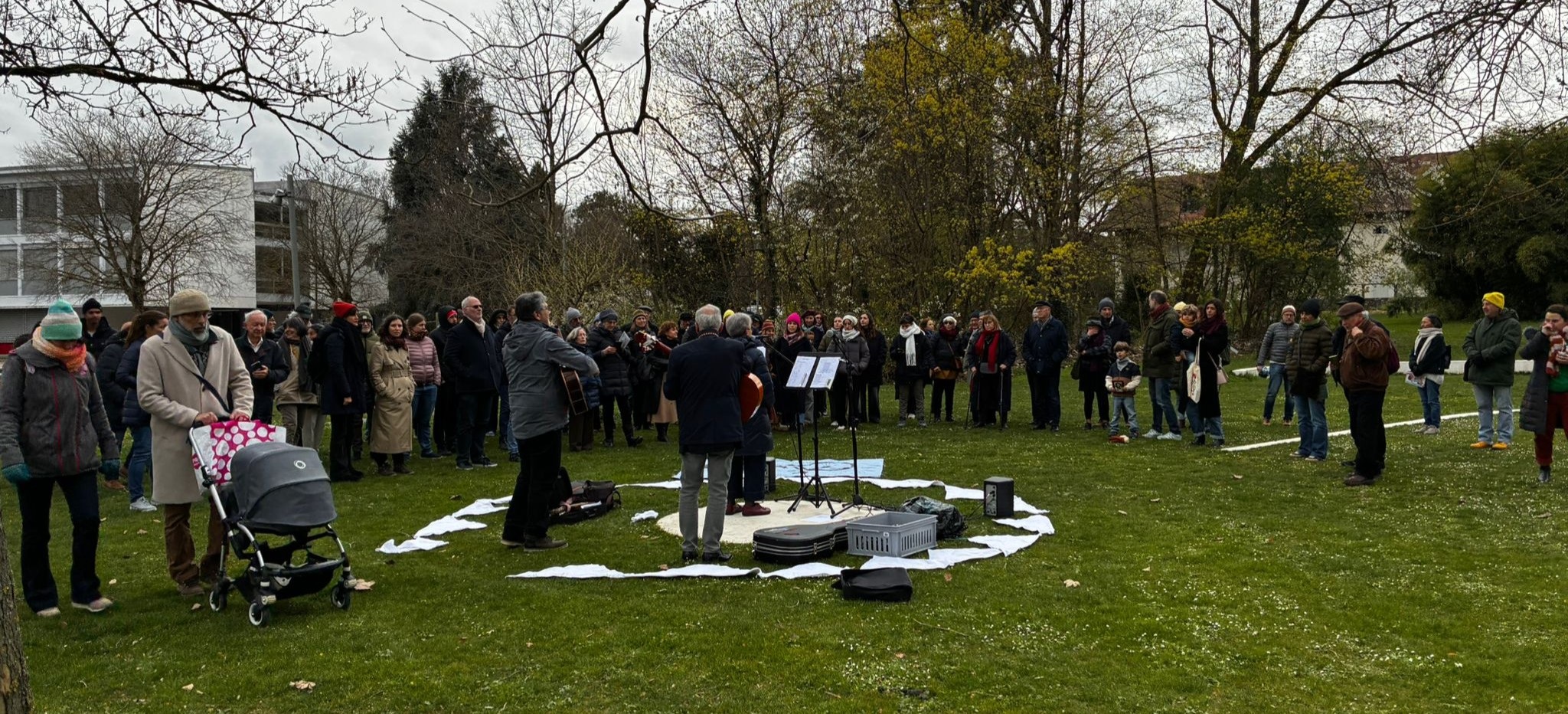 Este maratón de solidaridad que convocó a más de un millar de personas culminó simbólicamente el 28 de marzo en el Jardin de los Desaparecidos de Meyrin, un barrio popular de Ginebra que acogió a decenas de refugiados en los años 70. Fue un emotivo homenaje a todos aquellos hombres y mujeres, jóvenes y adultos, y a bebés recién nacidos, que tanto en Argentina como en el resto del continente sufrieron en carne propia la represión, la tortura y, sobre todo, la desaparición-asesinato.