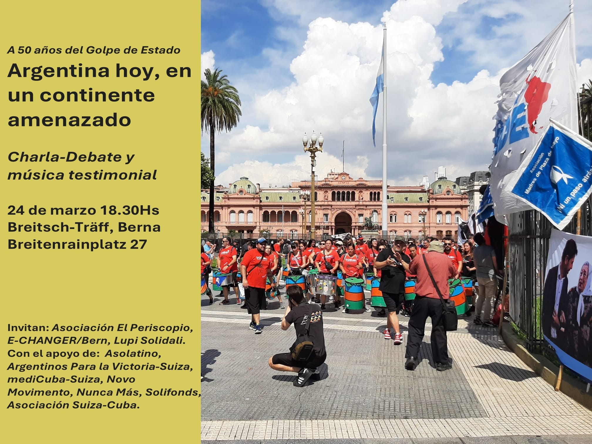 El 24 de marzo, varias asociaciones argentinas, latinoamericanas y de la solidaridad helvética con América latina convocaron en el centro comunitario Breitsch Träff de Berna una charla-debate (acompañada de música testimonial) sobre Argentina hoy en una América Latina amenazada. Entre los presentes, representantes de varios países latinoamericanos, como México, Cuba, Colombia, Venezuela, Uruguay, Brasil y Argentina, entre otros, así como numerosos suizos e italianos. Una muestra de diversidad que reforzó el carácter de unidad internacional contra la ultraderecha.