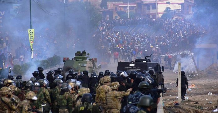 El 10 de noviembre del 2019 se concretó un golpe de estado violento en Bolivia digitalizado por Estados Unidos, que logró articular a la oligarquía nacional racista con las Fuerzas Armadas., la policía y los grupos paramilitares para obligar a renunciar a Evo Morales a punta de pistola.