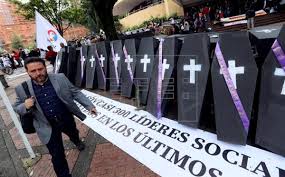 Mientras, la Fundación Ideas para la Paz denunció que 93 líderes sociales han sido asesinados en Colombia en lo que va de año, lo que convierte este periodo en el más violento desde 2010. Ocho de los 32 departamentos de Colombia concentraron 77.5 por ciento de los homicidios, en 58 por ciento de los casos no se ha encontrado al culpable, y en 35 por ciento la responsabilidad recae sobre las facciones criminales y grupos armados ilegales.