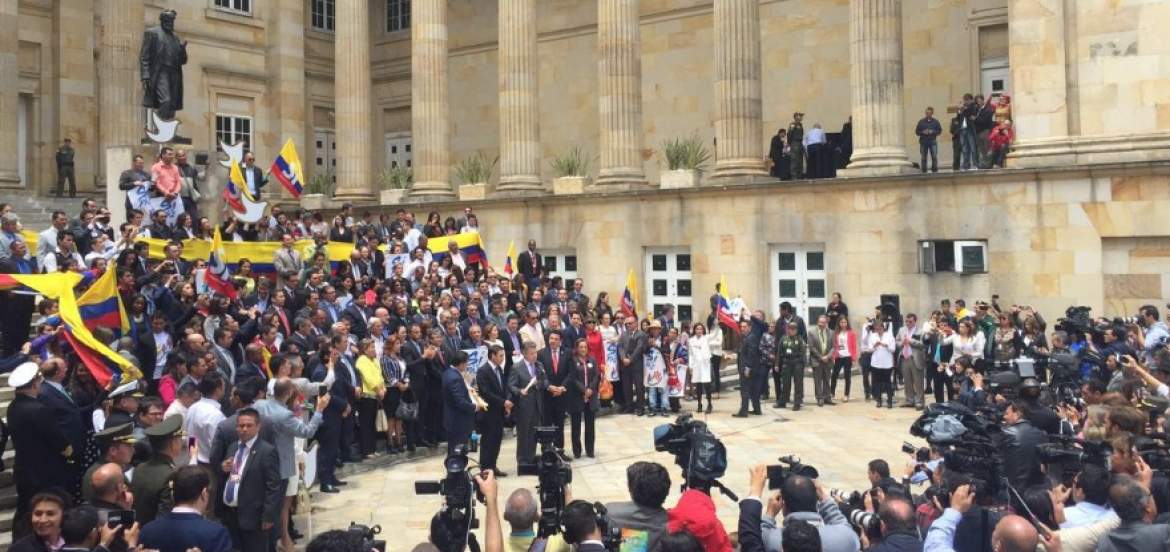 Nils Castro| Al dirigirse a la multitud que se congregó ante el Congreso coreando ¡Sí se pudo! ¡Sí se pudo!, el 25 de agosto el presidente Juan Manuel Santos anunció: “Como jefe de Estado y como comandante en jefe de nuestras fuerzas militares he ordenado el cese al fuego definitivo con las FARC a partir de las 00:00 horas del lunes 29 de agosto. ¡Se termina así el conflicto armado con las FARC!”