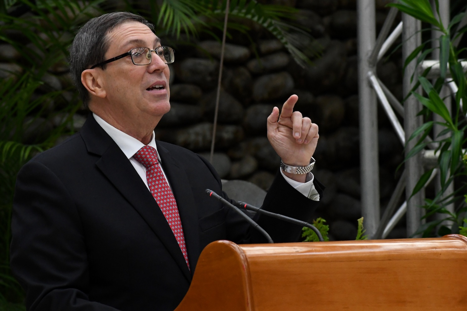 Bruno Rodríguez durante la presentación del informe. (Xinhua/Joaquín Hernández)