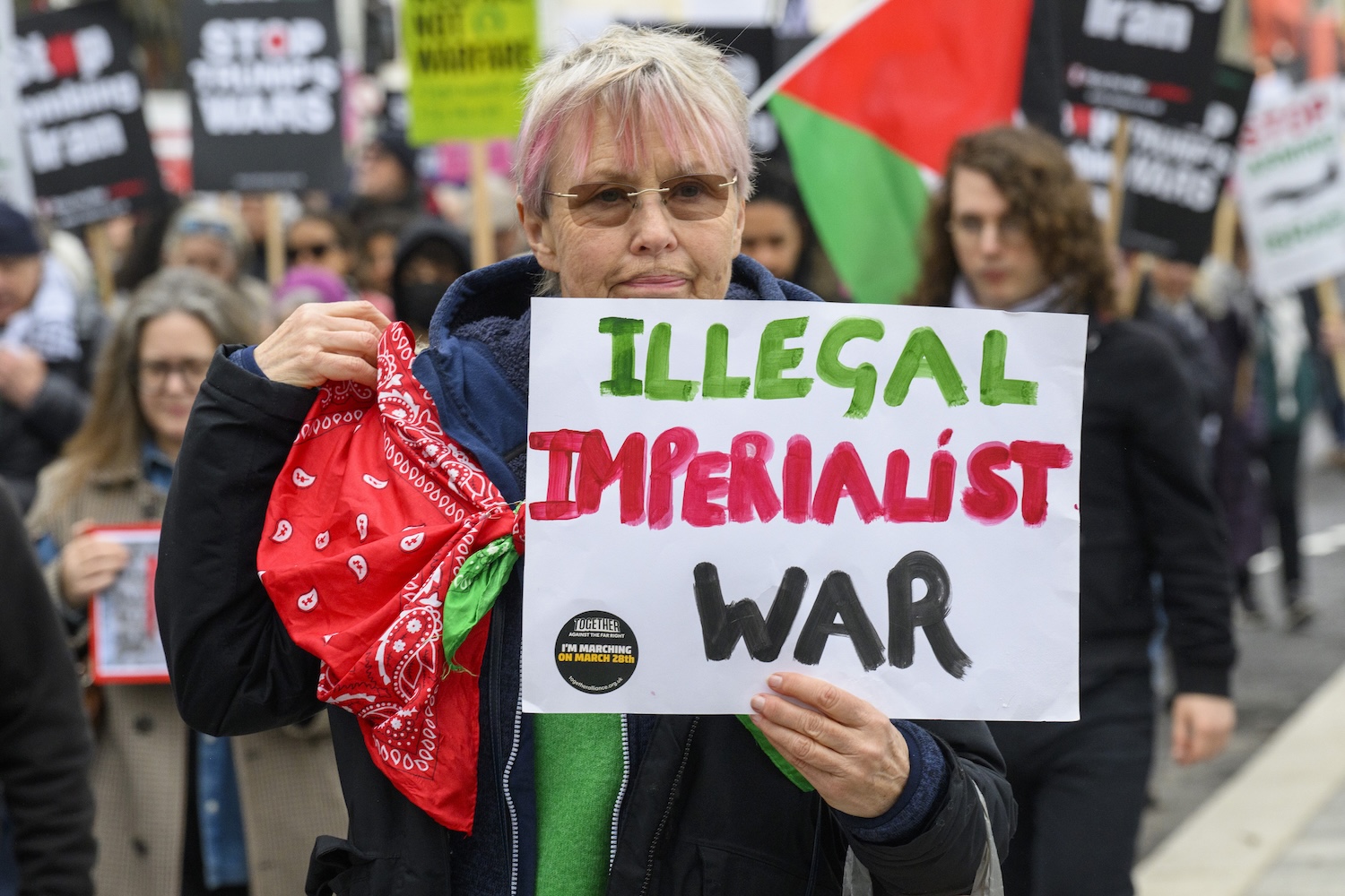 Una marcha en contra de los ataques estadounidenses e israelíes en Irán, en Londres, Reino Unido. (Xinhua)