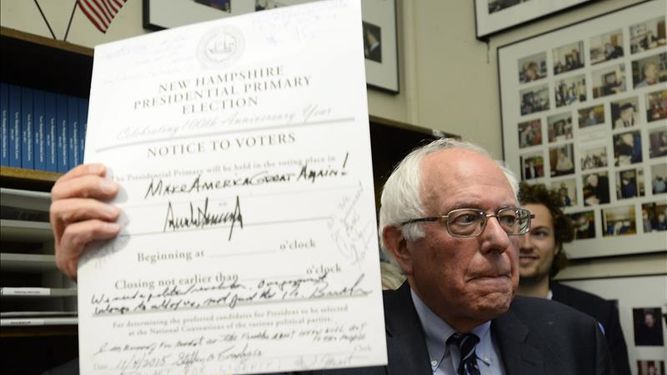 eeuu bernie sanders1Dentro del Partido Republicano había crecido una figura que daba la apariencia de ser un excéntrico multimillonario aunque –al empezar la campaña- lejano a la posibilidad de transformarse en candidato republicano: Donald Trump. Titular de varias empresas vinculadas a la construcción, hotelería y entretenimientos, su capital ha sido estimado entre 5 y 8 mil millones de dólares. Hace responsable a la actual dirigencia por la crisis y desprestigio que –sostiene- atraviesan los Estados Unidos; cuestiona lo que considera un sometimiento a los intereses chinos, quienes –según sus palabras- son los inventores del tema del “cambio climático” para perjudicar a la industria norteamericana. También criticó la presencia de inmigrantes mejicanos a los que define como “corruptos, delincuentes y violadores”. Este tipo de declaraciones “políticamente no correctas” lo transformaron en la “bestia peluda” de la política norteamericana. Simultáneamente su imagen crecía sin parar, hasta transformarse en el candidato con mejores perspectivas dentro de los republicanos y emparejando las posibilidades que tenía la candidata demócrata.