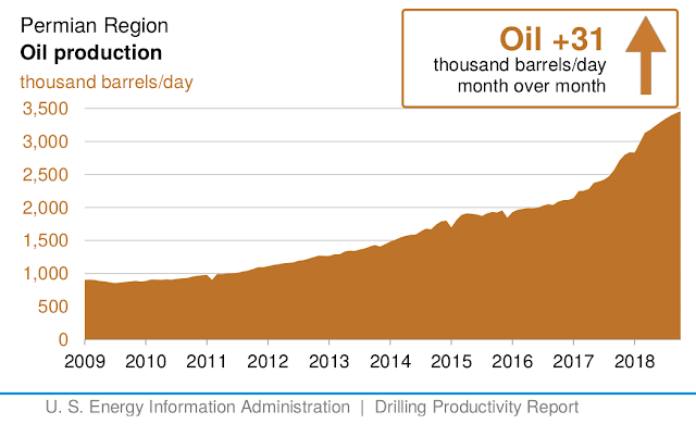 Durante el año 2016 se observó un descenso de la producción de petróleo de fracking en los EE.UU., signo de que los productores tiraban la toalla y no querían perder más dinero. Sin embargo, con la llegada de Donald Trump a la Casa Blanca y la implantación de numerosas medidas fiscales favorecedoras, la producción repuntó durante 2017 y lo que llevamos de 2018. Sin embargo, si miramos la evolución reciente de las gráficas de producción de las principales cuencas del fracking estadounidense (ver el último Drill Productivity Report del Departamento de Energía de los EE.UU.) observamos una tendencia al estancamiento en todas ellas, incluso en Permian. Durante el último mes, la producción aún ha crecido un poco, pero cada vez lo hace a menor ritmo.