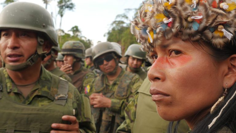 Asimismo, advirtió que aplicará el sistema de justicia indígena a “militares y policías que se acerquen a territorios indígenas” y denunció la “insistencia” del gobierno en “avanzar sobre nuestros territorios con la explotación de minería, petróleo y bienes de la naturaleza, destruyendo entornos de vida y respaldando con fuerzas militares la presencia de las empresas”..