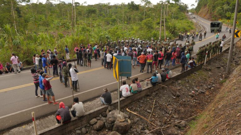 La organización de indígenas de la Amazonia, donde se ubica la infraestructura petrolera, publicó videos que muestran a habitantes con lanzas bloqueando carreteras y gritando: “¡abajo el gobierno!” En Alausí, grupos de indígenas retuvieron a 47 militares.