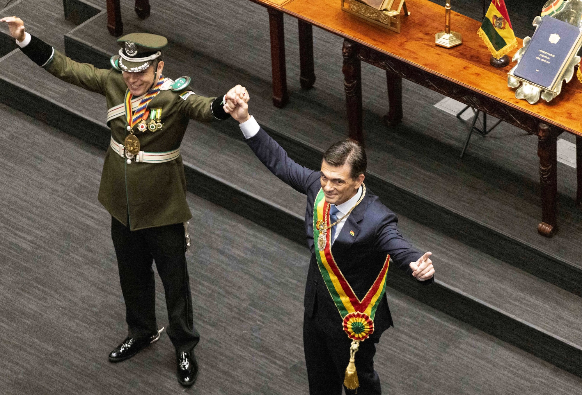 “Esta es la nueva Bolivia que se abre al mundo. Nunca más una Bolivia aislada, sometida a ideologías fracasadas”, arrancó Paz su discurso en el parlamento, con el beneplácito de algunos de los presentes, entre los que destacaba el ultraderechista argentino Javier Milei.