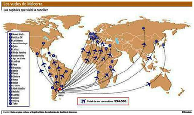 Con un sueldo de $152.908,37, calculados para una carga laboral full time y no parcial, la ex funcionaria de la ONU también recibió críticas por el gasto presupuestario que costaron sus 14 vueltas alrededor del mundo en 10 meses, con 594.000 kilómetros en 37 visitas oficiales, según el registro de audiencias al promediar septiembre, incluidos las nueve visitas a Nueva York, según el cálculo meticuloso del matutino El Cronista del pasado 22 de septiembre.