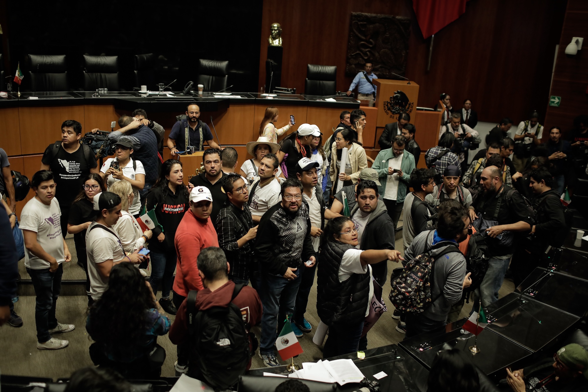 La reforma judicial se aprobó en lo general, después de la medianoche del martes, durante una larga sesión en la que hubo cambio de sede por invasión de manifestantes, toma de tribuna, insultos, sobresaltos, pero en la que el oficialismo logró la mayoría calificada, Después del proceso en el Congreso, la reforma será turnada a los legislativos estatales.