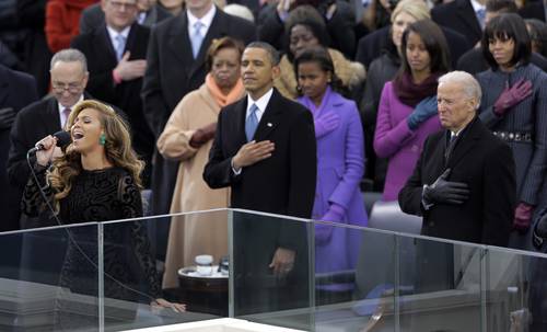 Celebridades como la actriz Eva Longoria y la cantante Beyoncé, que cantó el himno nacional, dieron color a la investidura.