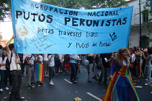 La APP hace su defensa de la diversidad sexual a través del peronismo que, a su juicio, “…siempre defendió a los humillados y ofendidos”. Y otro de sus lemas, “el puto es peronista, el gorila es gay”, representa un desafío para los que impulsan las marchas del “orgullo gay”, pues “… yo y otros compañeros tenemos otras prioridades, como tratar de obtener dinero para comer” (Ayala, BBC, mayo de 2011).